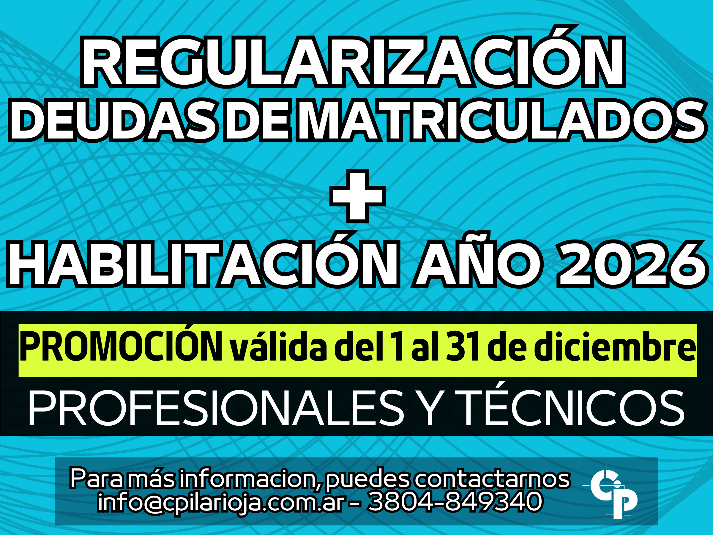 Durante el mes de Diciembre de 2025, se pone a disposición la promoción de Habilitación de Matricula para el periodo del año 2026. Además del sistema de regularización de Deudas.