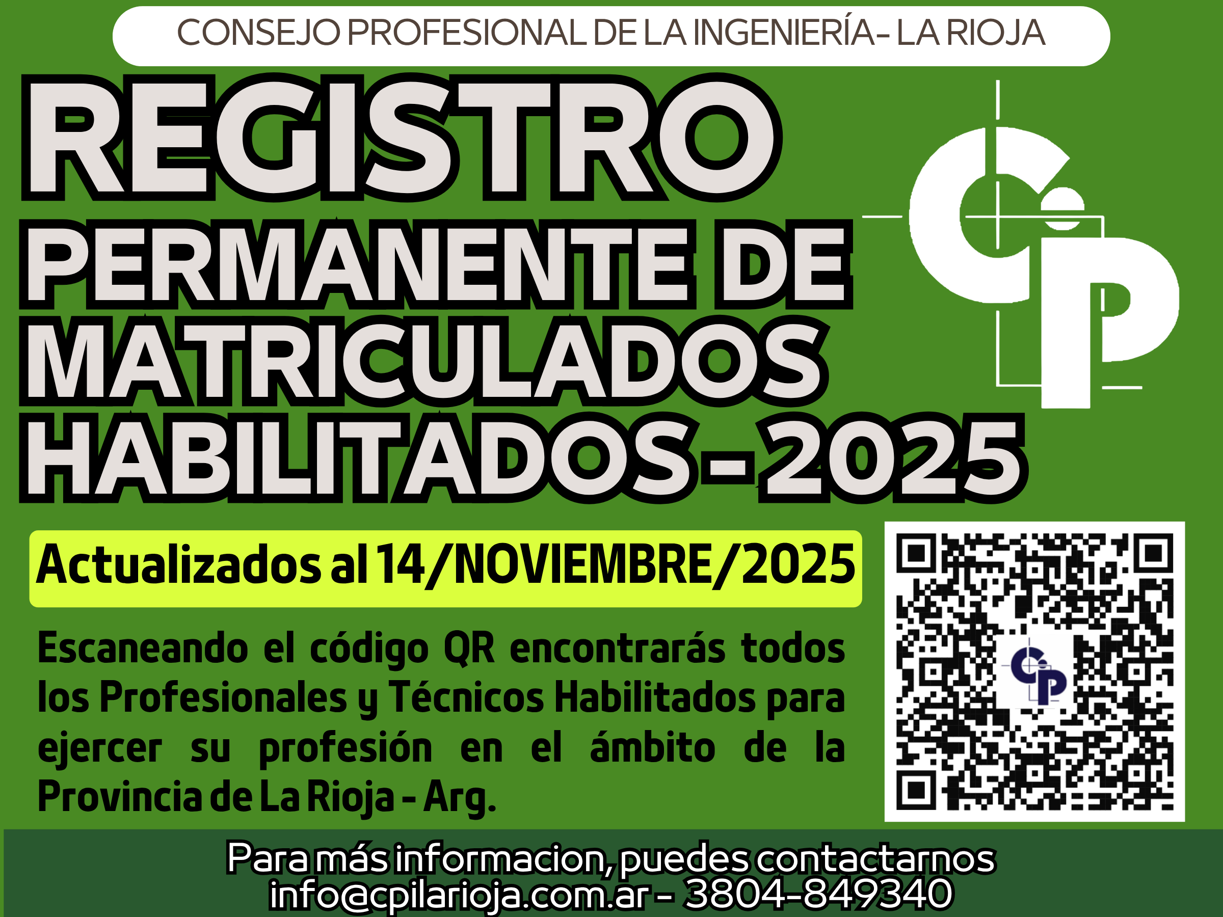 Escaneando el código QR encontrarás todos los Profesionales y Técnicos Habilitados para ejercer su profesión en el ámbito de la Provincia de La Rioja - Arg. (Actualizados al 14 de Noviembre de 2025)